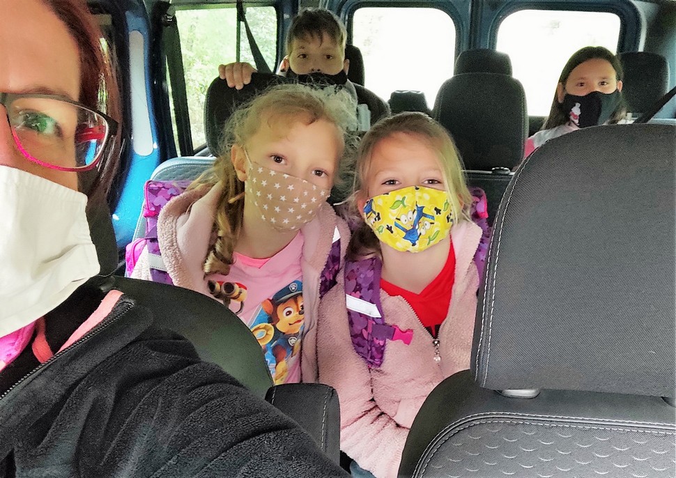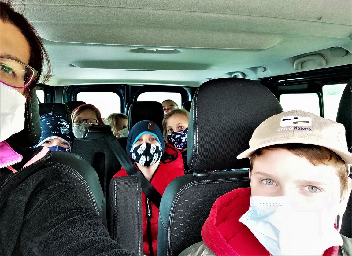 Mivel április 19. és május 10. között csak az alsósok számára volt hagyományos jelenléti oktatás, bejáróinkat az iskola kisbuszával szállítottuk a suliba, illetve haza, ami számokra újdonság volt a megszokott nagyobb iskolabusz helyett.