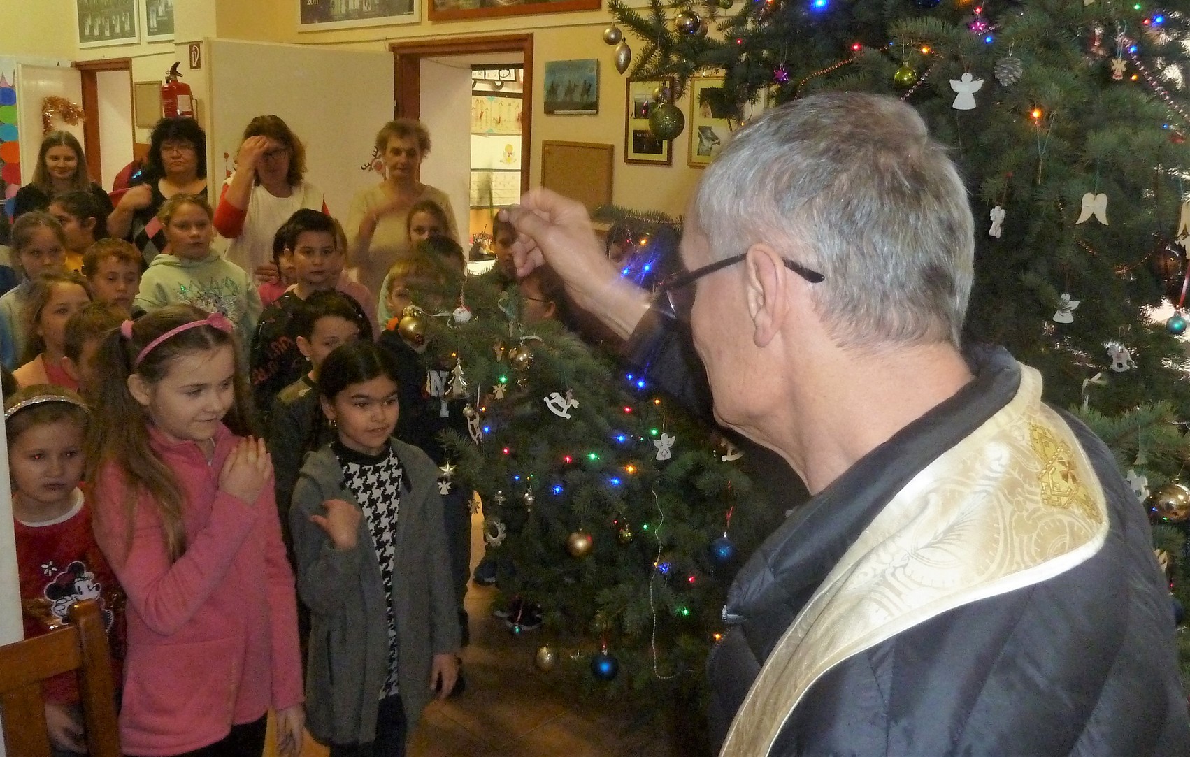 Vízkereszt után hétfőn, immár hagyományosan Helter István atya megáldotta „házunkat, és minden lakóját”- azaz iskolánkat, és az ide járó gyermekeket, itt dolgozó felnőtteket.