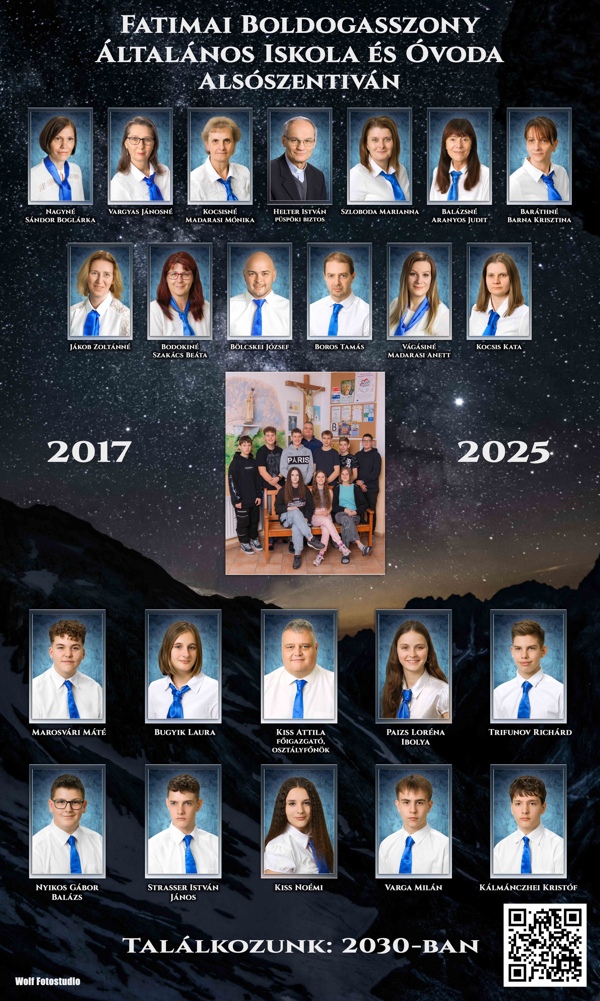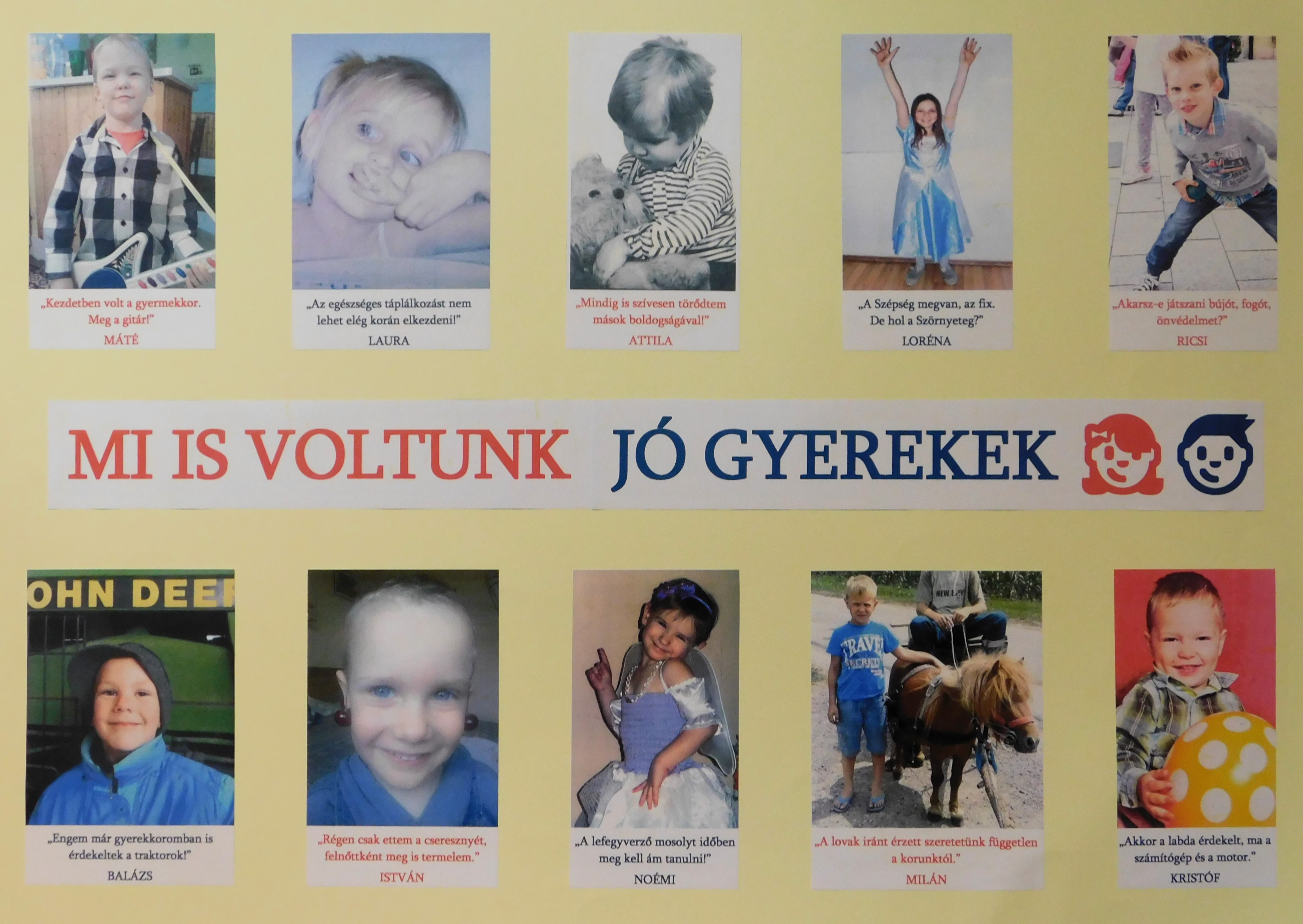 Tavalyi nyolcadik osztályosaink régi hagyományt élesztettek fel egy babatabló elkészítésével, amelyet ballagásukkor tekinthettünk meg. Idén ballagó diákjaink sem kívántak kimaradni ebből a mókából, így ők is összehozták saját kis gyermekkori galériájukat. Az eredmény a fentebb látható tabló lett, amit ma a folyosói aulán tettünk közszemlére, ezzel is utalva a múló időre és a közelgő ballagásra.