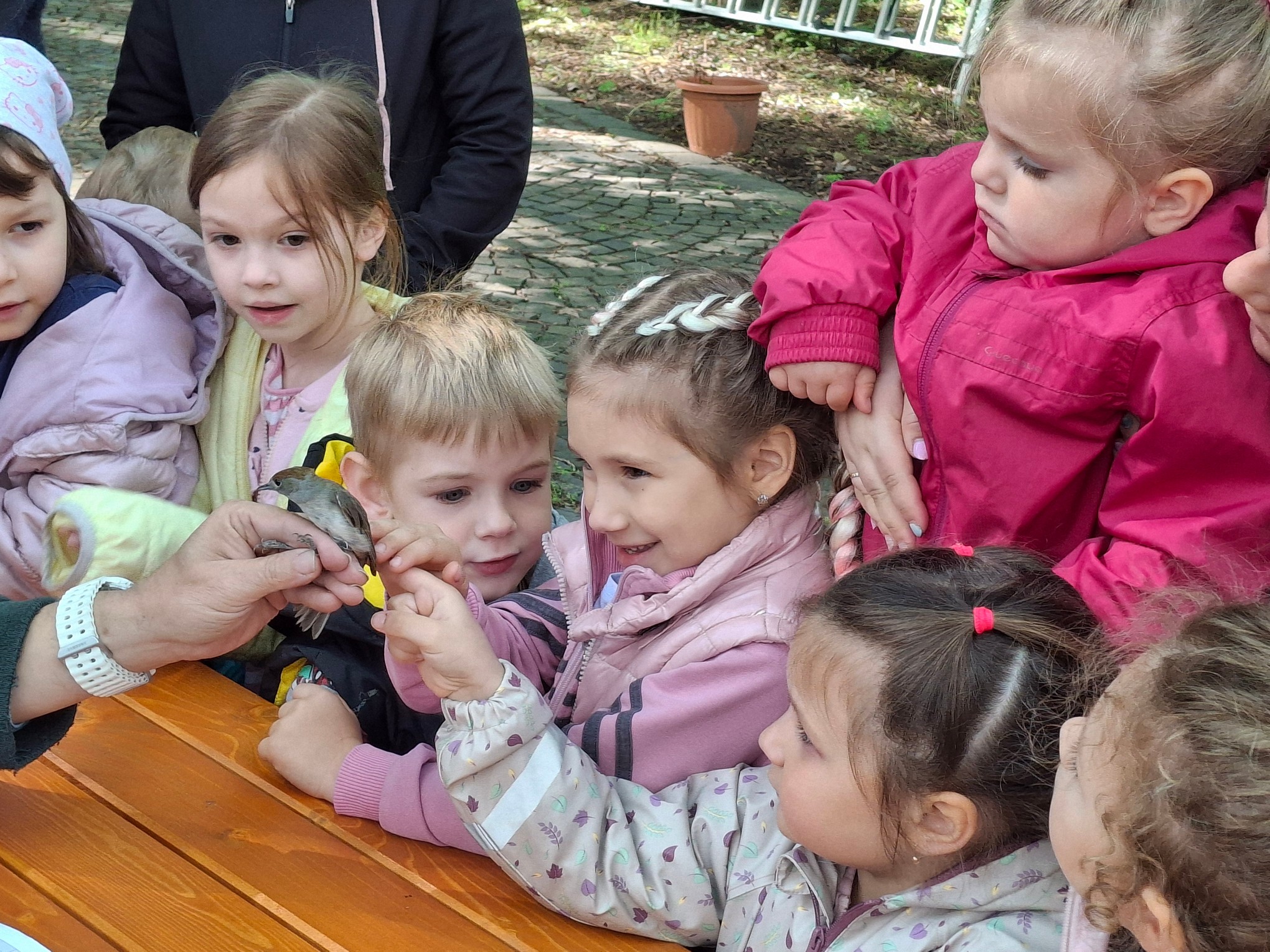 Május 9-én, pénteken újra madárgyűrűzést tartottunk az óvodában és a Fatimai Kegyhelyen. Idén tavasszal is Nagy Imre (természetvédelmi őrkerület-vezető, Vértes-Mezőföldi Tájegység), Csihar László(Natura 2000 gyepvédelmi tanácsadó, Vértes-Mezőföldi Természetvédelmi Tájegység) és Staudinger István(DINPI és Magyar Madártani és Természetvédelmi Egyesület munkatársa) voltak a vendégeink. Viszont ezúttal belepillantottunk a szülők és a Filip Méhészet által felajánlott és kihelyezett madárodúkba is. Örömmel vettük tudomásul, hogy jónéhány odúba beköltöztek a széncinegék. Az óvodában található török mogyoró fára kihelyezett odúba is csodára bukkantunk. 7 kis széncinege bújt ki a tojásából, őket pedig meg is gyűrűzték a madarászok. Az óvodások megfigyelhették a külső jegyeiket és apró ujjaikkal meg is simogatták a kis jövevényeket. Ezt követően kisétáltunk a Kastélyparkba, ahol a megszokott módon (kifeszített hálóval) igyekeztek a szakemberek madarat befogni. Ezúttal a népes madársereg elmaradt. Viszont igazi különleges fajok mutatták meg magukat. A gyermekek találkozhattak egy barátposzátával és egy korábban meggyűrűzött széncinegével is. Laci bácsi elmondta, hogy ez nagyon jó hír. Hiszen ez azt bizonyítja, hogy ezek a madarak szeretnek itt élni. Helyesen gondoztuk őket ősszel és télen is. Nem kellett máshova elvándorolnia eleséget keresni. És bizony ez a kis széncinege a fiókáinak is itt keres majd otthont. Az óvodásokat, iskolás csoportok követték. Ők is részt vettek a szakemberek által tartott kis előadásokon. István bácsi még arról is mutatott fotókat az összegyűlt gyerkőcöknek, hogy előző nap, milyen hatalmas rétisas fiókákat gyűrűzött meg. Igazán különleges szakma az övéké, köszönjük Nekik, hogy kis bepillantást tehettünk az életükbe.