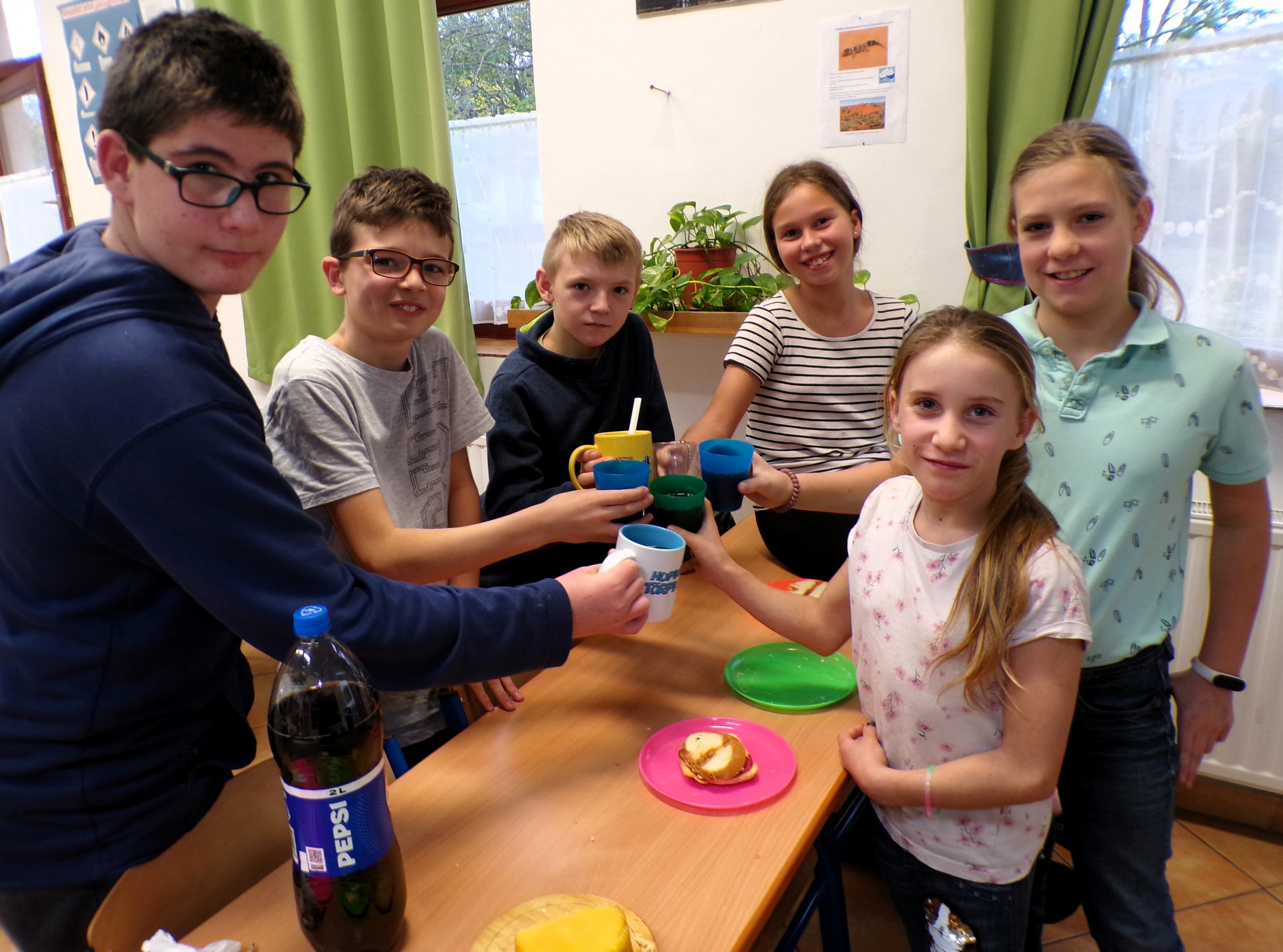A szünet letelte után természetesen minden osztályunk megtartotta az ősz készülődést, így a 7., a 6. és a 7. osztályosok is. Valamennyi osztály a gasztronómia jegyében tevékenykedett: a 7. osztályosok pizzát és muffint falatoztak (köszönjük a süteményt Dörögdi Mariannának), a 6. osztályosok süteménnyel édesítették meg napjukat és születésnapos osztálytársukat is megköszöntötték, az 5. osztály pedig gyümölcssalátát készített közösen, illetve melegszendvicset is sütöttek. Bízzunk benne, hogy az elfogyasztott kalóriák erőt adnak a szorgalmas tanuláshoz, hiszen most következik a téli szünet előtti hajtós időszak, amelyben a félévi jegyeiket is megalapozhatják a diákok.