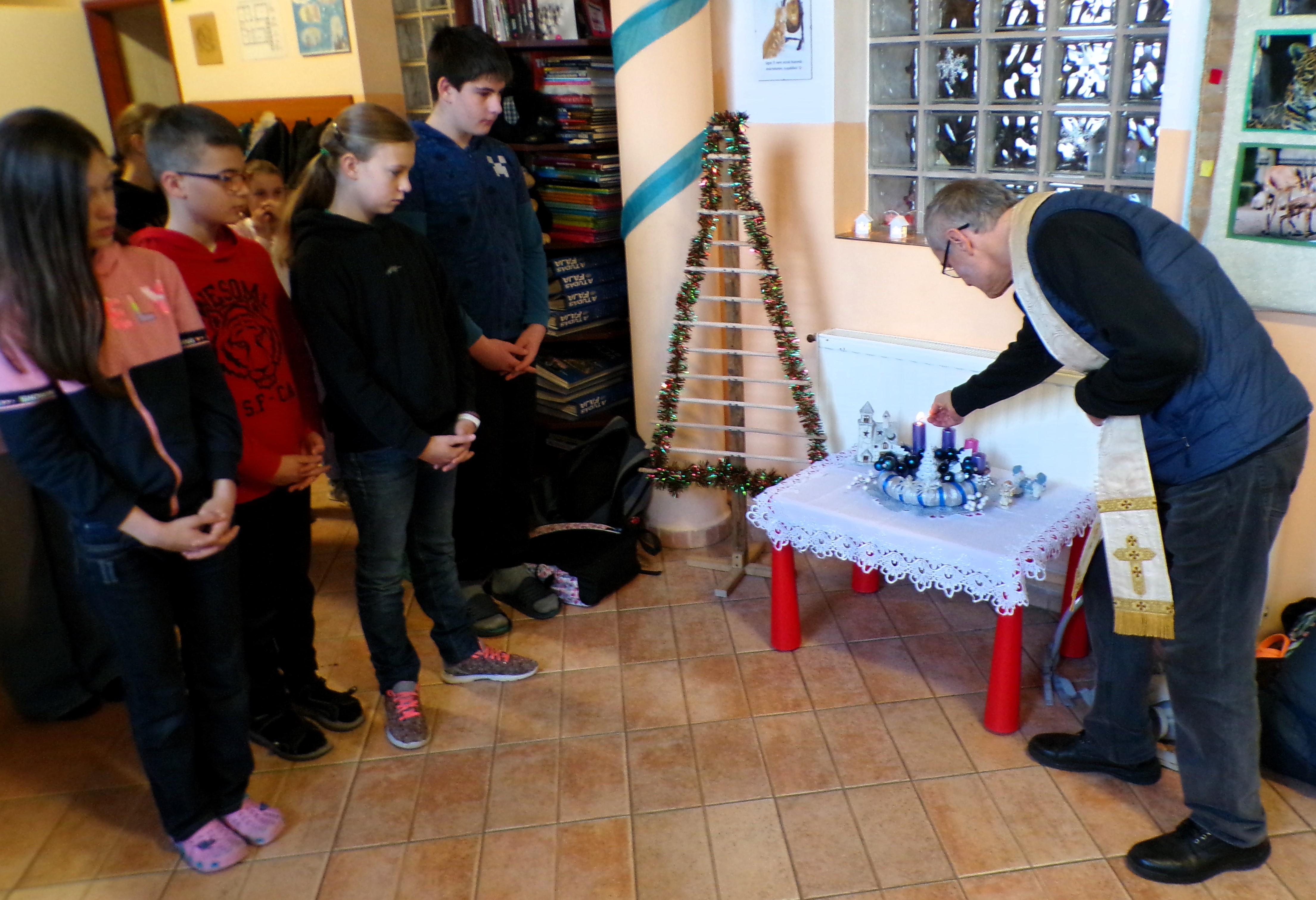 Felsőseink Wass Albert ma is időtálló Karácsonyi meséjének felolvasásával, alsósaink pedig az Adventi hírnök énekkel és verses köszöntőkkel készültek a mai települési adventi gyertyagyújtásra, a második gyertya meggyújtása előtt ugyanis iskolánk vállalta a gyertyagyújtás előtti kis műsor megtartását. Adventi koszorúinkon immár két gyertya fénye igyekszik eloszlatni a sötétséget, s a Megváltó eljövetelére készülve adjunk teret szívünkben is a jóság fényének!