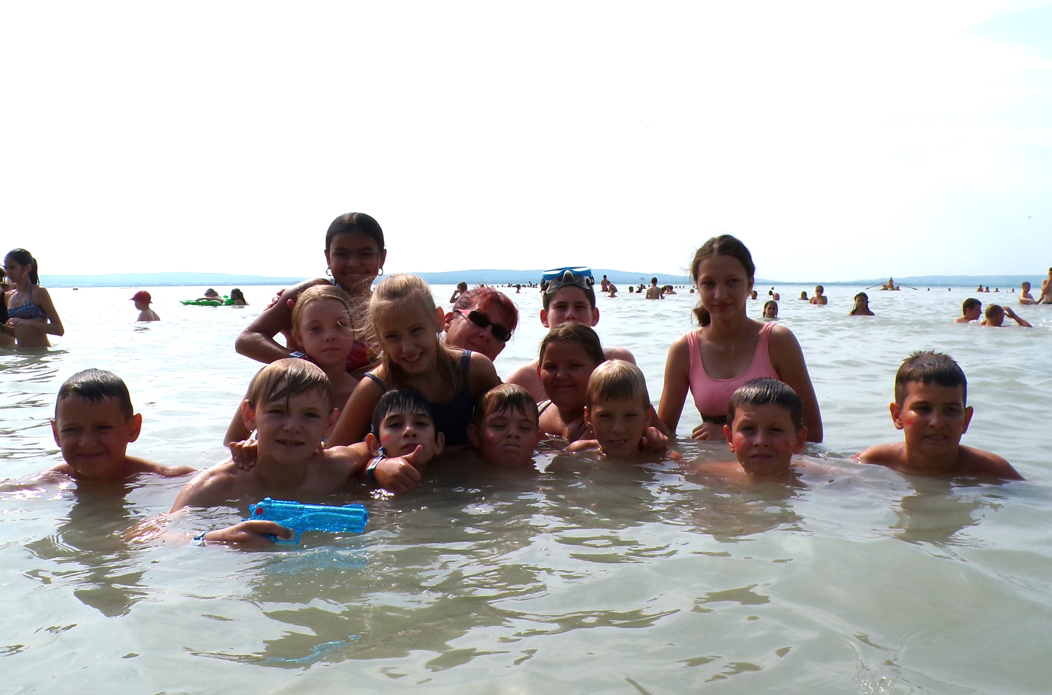 Bepótoltuk a tegnap kiesett fürdőzést is: bár reggel élénk szélre ébredtünk, igazi nyári idővel folytatódott a nap, így délelőtt, majd ebéd után (borsóleves, pulykapaprikás masnitésztával, uborka, uzsonna: alma) és délután is csobbantunk egy jót.