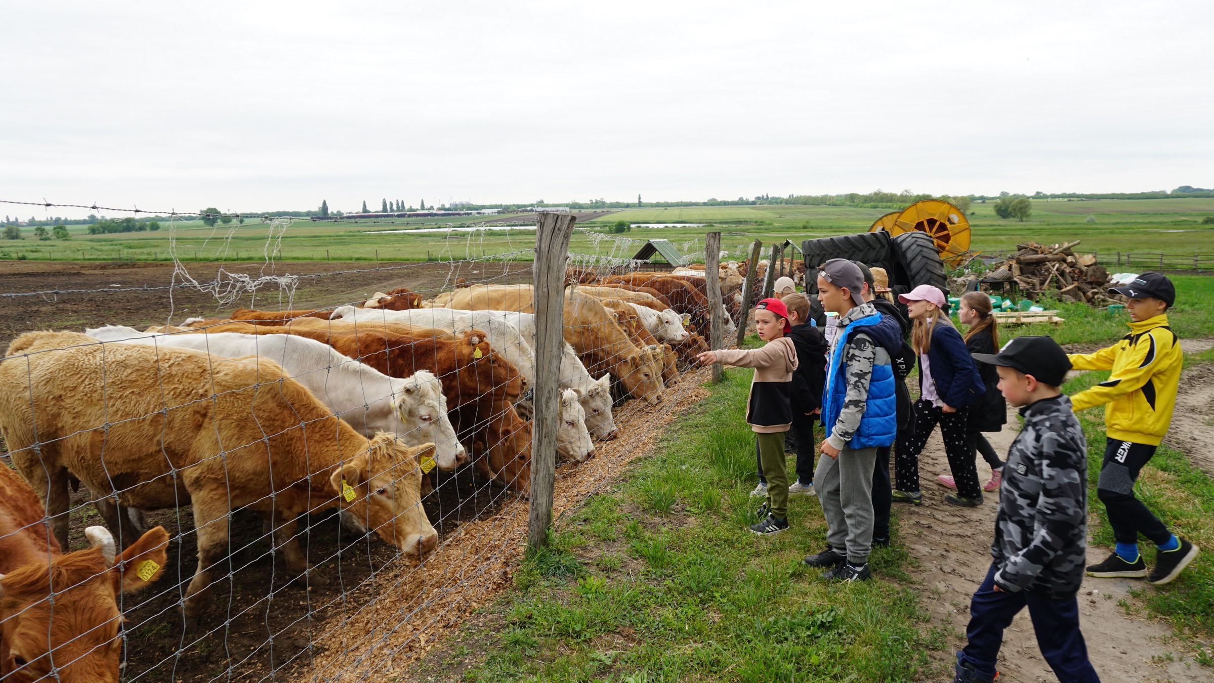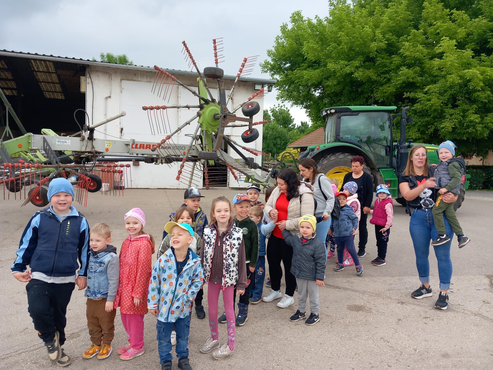 Idén az 1-3. osztályos tanulók is elkísértek bennünket, így sikerült egy nagy buszt megtöltenünk gyerekekkel. Boldogan, érdeklődve szálltak le a járműről, mikor megpillantották a sok-sok traktort és a számtalan haszonállatot. Az iskolások és óvodások külön utakon közlekedtek, de ugyanazokban a látnivalókban, élményekben volt részük. Vadász Tamás, a tanya tulajdonosa ismét lehetőséget biztosított arra, hogy megnézhessük a telep minden egyes szegletét. A frissen született kismalacok és szüleik is igazán elvarázsolták a gyerkőcöket. A bátrabbak még meg is simogatták, ölbe is vették a pár hetes malackákat. Ezt követően megnéztük a tanyán található szarvasmarhákat. Suplicz István, a telephely vezetője, még a tehenek, borjak közé is beengedett bennünket. És ami minden gyereknek hatalmas élményt jelentett, az a traktorozás volt. Minden önként jelentkezőt vittek egy nagy kört a telepen a hatalmas járművekkel!
