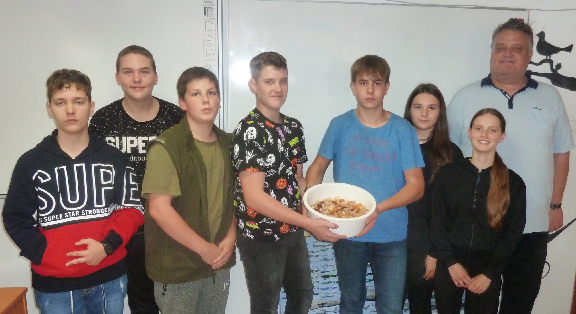 A 7. osztály szintén gyümölcsökkel készült a foglalkozásra, csak ők közös munkájuk gyümölcsét saláta formájában el is fogyasztották.