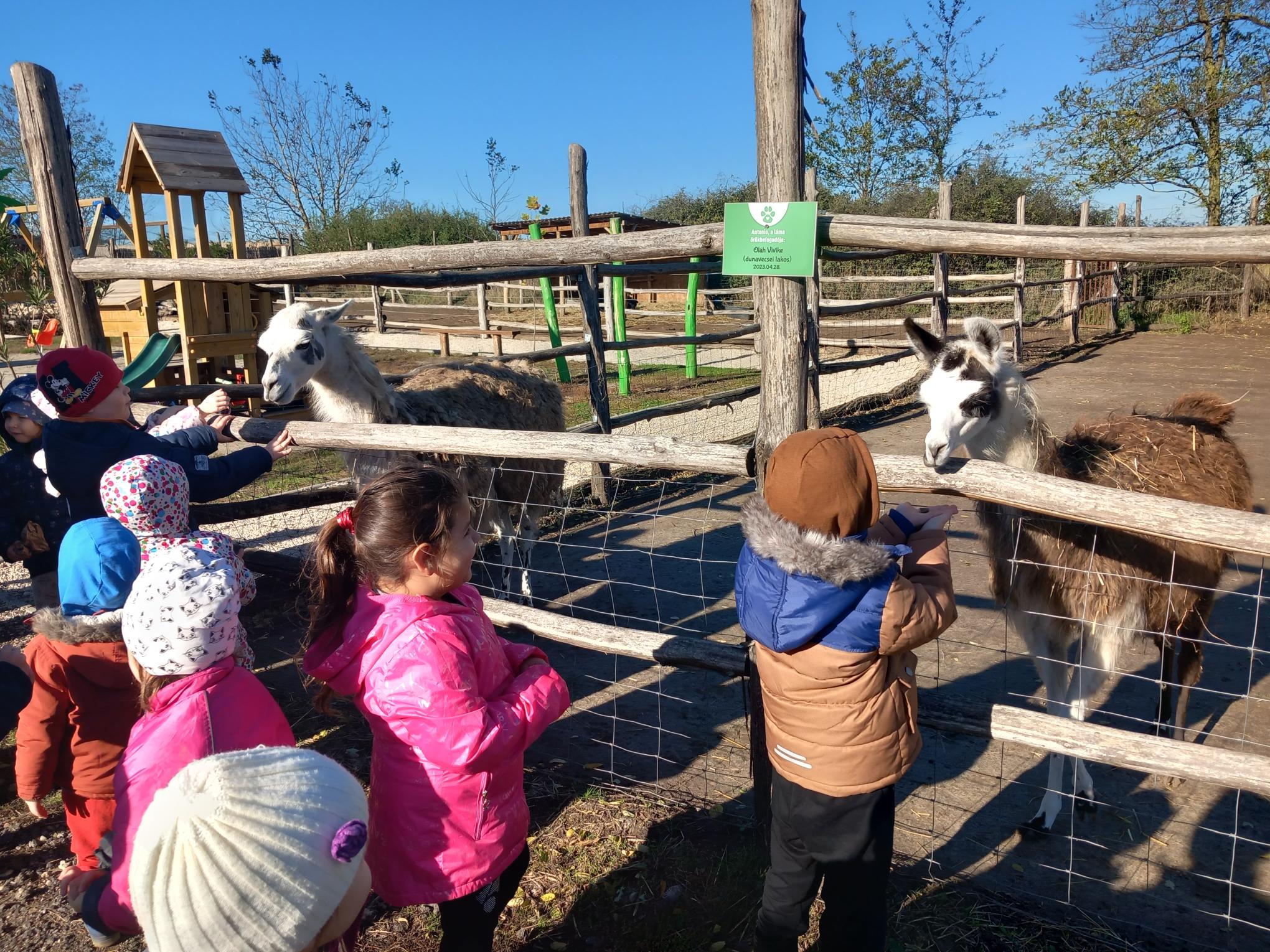 Végül egy rövid buszos utazást követően megérkeztünk az állatparkba. Óvodásainkkal immáron harmadik alkalommal volt részünk együtt meglátogatni az itt élő állatokat. De még most is csodálkozva figyelték a sarki rókát, a kengurukat, a különféle kacsákat, lámákat, szarvasokat és nandukat, emukat… Jókedvűen etették és simogatták a falánk kecskéket, akik szinte minden gyermek arcára mosolyt csaltak.