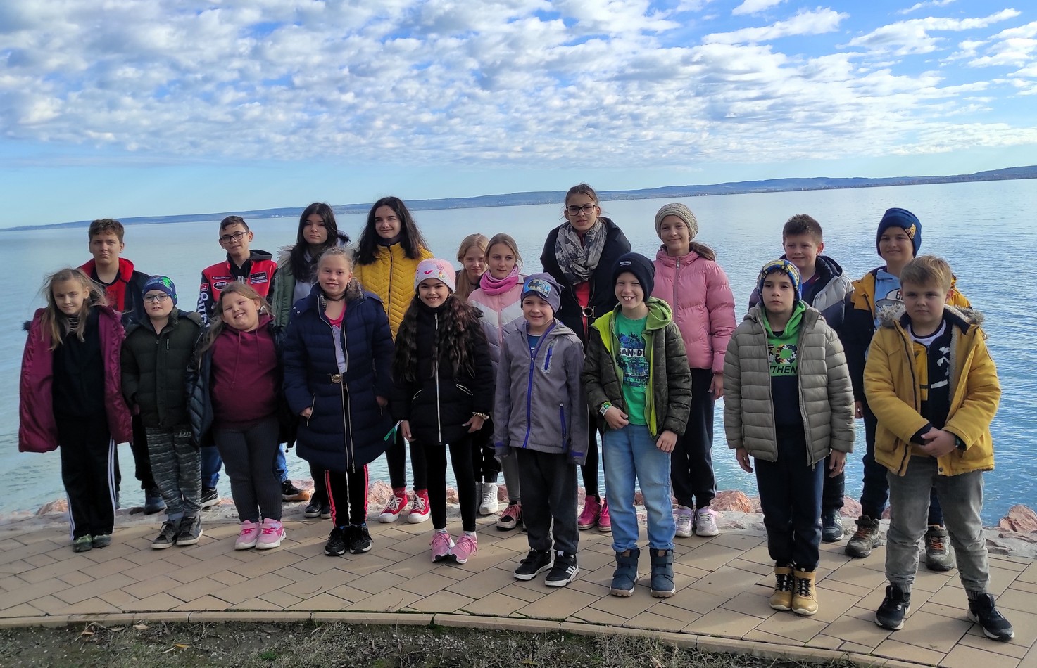 A tízóraira kapott banán mellé linzert és pozsonyi kiflit is válthattunk ki a szervezőktől kapott ajándékként. Lesétáltunk a Balaton partra, ahol megcsodálhattuk az őszi színekben pompázó strandot. Miután sikerült gyorsabban elfogyasztanunk a tízórait, mint a hattyúk reakcióideje (a legbátrabb hajszál híján kilopta az igazgató úr kezéből a pozsonyi kiflit) 😅, visszajöttünk a főtérre, ahol kipróbáltuk a Multicsarnokban a felfújható akadályokkal berendezett lézerharc-pályát. A negyedórás csatában alaposan leizzadt a társaság, s a kékek kemény harcban legyőzték a zöldeket, felhőtlen boldogságot szerezve ezzel e sorok írójának 😋.