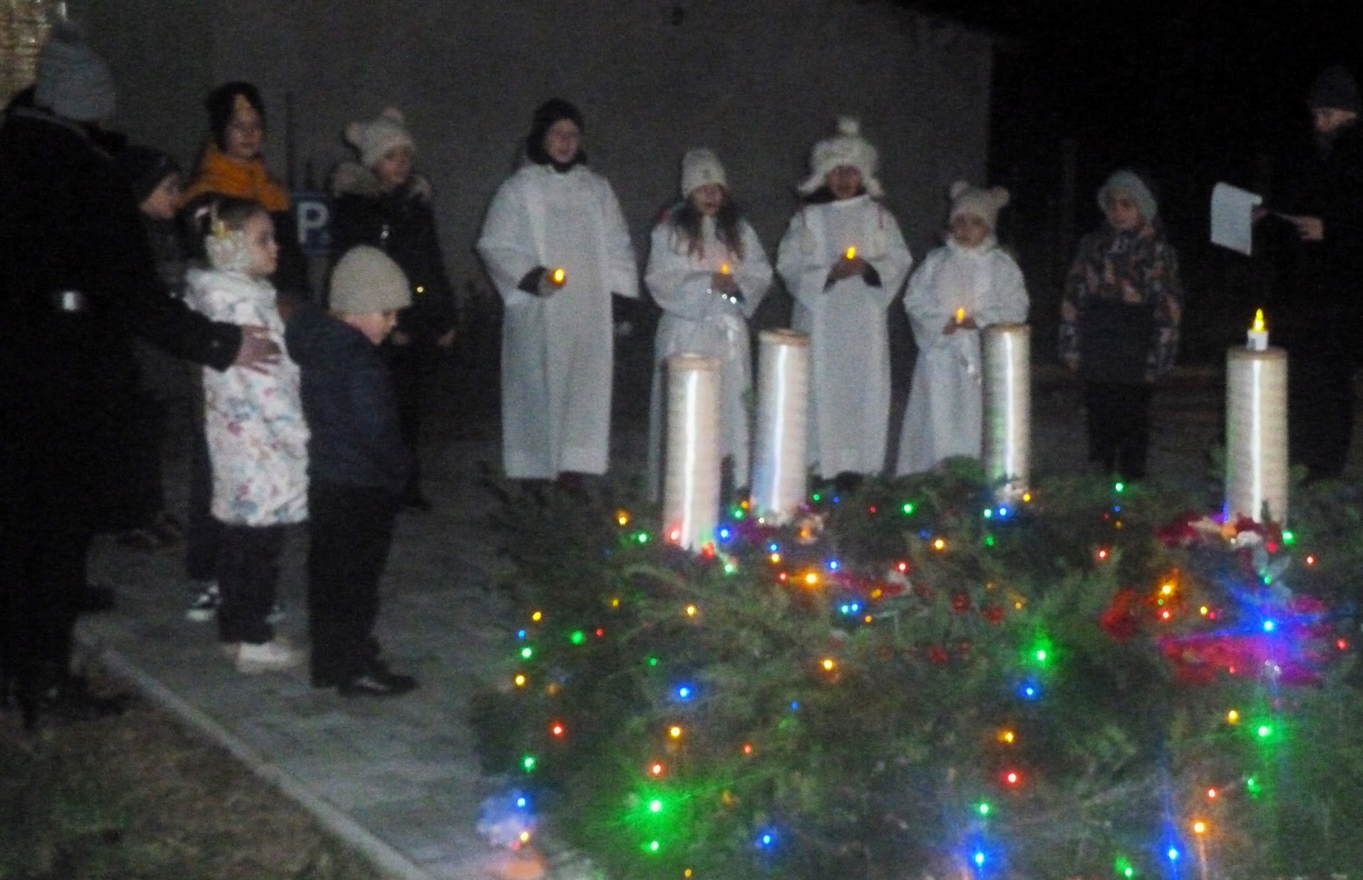 Advent első gyertyagyújtásán a Szentiványi Péter Közösségi Színtér udvarán önként jelentkező katolikus óvodásaink és iskolásaink adtak egy rövid kis műsort településünk érdeklődő lakóinak. Iskolásaink a ma reggeli áhítatkor a folyosón is bemutatták kedves előadásukat, majd Helter István püspöki biztos atya meggyújtotta az első gyertyát az iskolai koszorún is. Köszönjük a felkészítést Vargyas Jánosné hitoktatónknak!