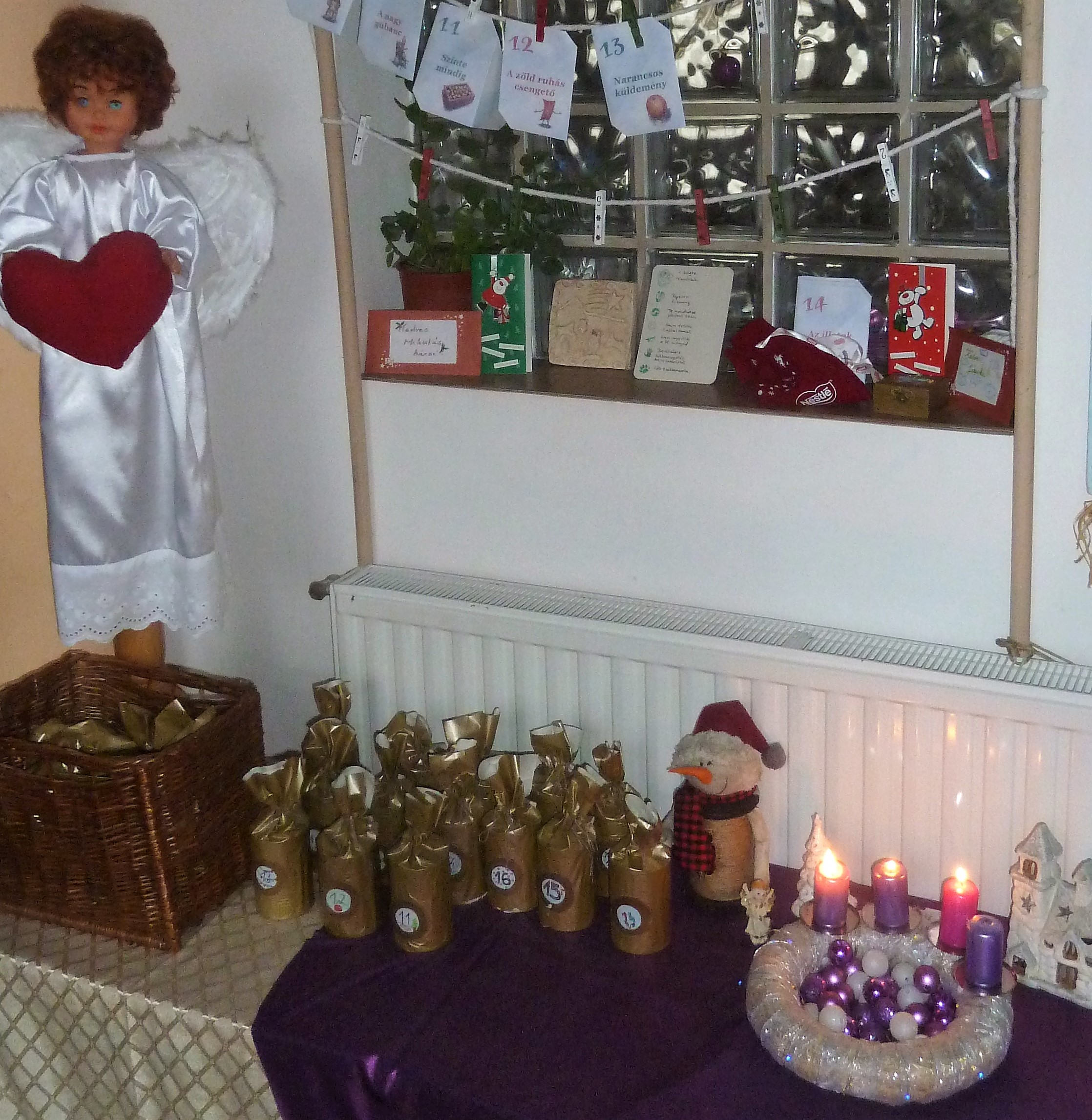 A zene, az osztálytermek és a folyosó dekorációi mellett az iskola adventi kellékei is aláfestették a karácsonyi hangulatot. Közös karácsonyfánkért pedig Márkli Ákosnak szeretnénk köszönetet mondani, a díszes fa minden adventi időszakban folyosónk impozáns látványosságának számít.