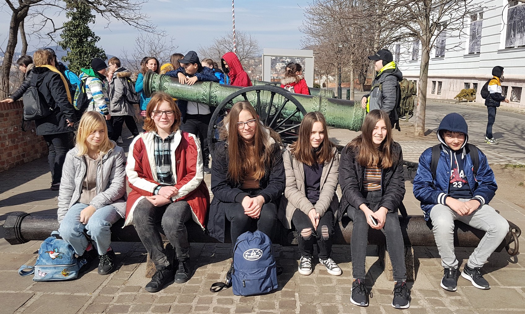 Mindenki örült a kora tavaszi kirándulásnak. Kaszás Karcsi bácsi kényelmes buszával utaztunk az alapi és cecei diákokkal együtt. Utóbbi társaság az 1848-49-es szabadságharc kapcsán, míg mi Mátyás király hadviselése témájában vettünk részt egy rendkívüli történelemórán a Hadtörténeti Múzeumban.