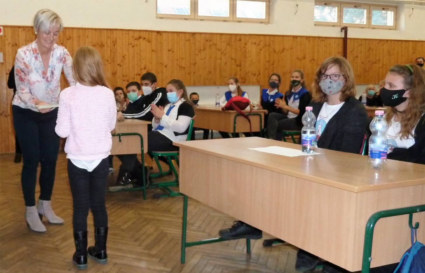 A kisebbek számára mesemondó versenyt rendeztek, melyre szabadon választott mesével készülhettek a 3-4. osztályos tanulók. Alsósainkat Punk Alexandra 3. osztályos tanuló képviselte A kiskakas gyémánt félkrajcárja című népmesével. Szandi kitett magáért, szépen előadta történetét, sikeresen átesve a tűzkeresztségen.