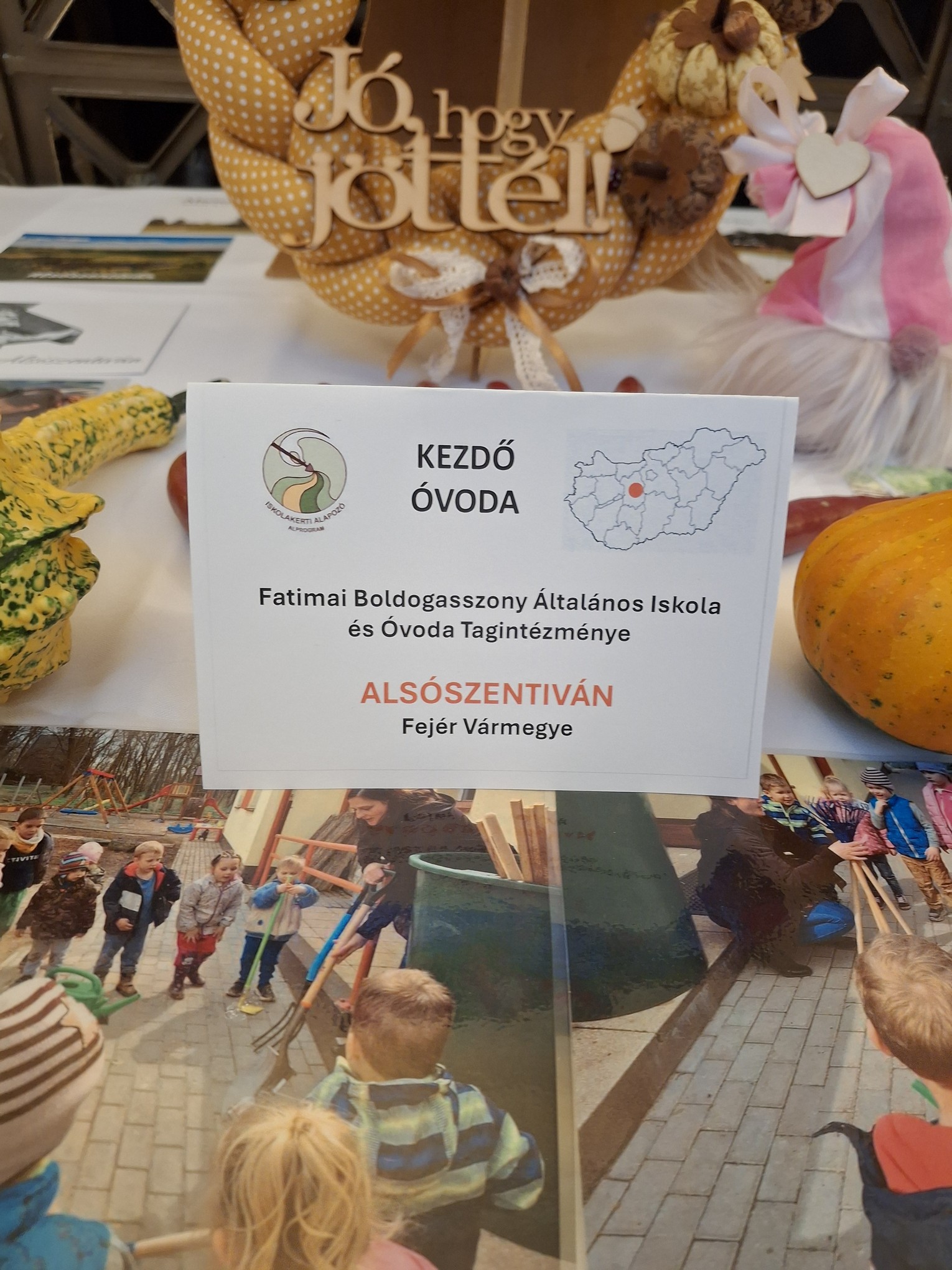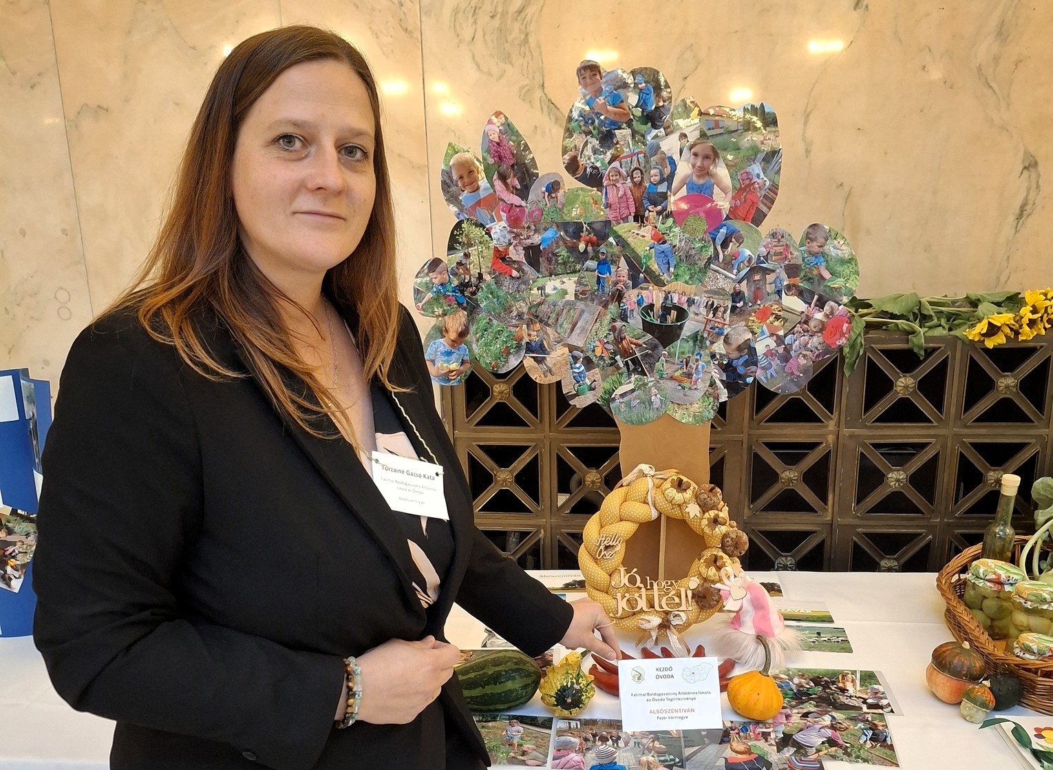 Szeptember 30-án, kedden volt szerencsém részt venni az Iskolakertekért Alapítvány által indított kezdő óvodakert létrehozó pályázatának zárórendezvényén, melyet a Belügyminisztérium Márványtermében tartottak. Intézményünk kerti tevékenységeit egy fotókollázzsal és néhány helyi terméssel mutattam be. Büszkén meséltem az itt lévő szakembereknek, pedagógustársaknak az óvodánk programjáról, kertészeti élményeiről, ők pedig nagyon értékelték a gyermekek és szülők tevékenységeit, óvodánk lelkületét. Számos iskola és óvoda, mentor iskola és mentor óvoda mutatta be munkásságát, az ország minden tájáról érkeztek pedagógusok. 214 érvényes pályázatból választották ki a 22 kezdő óvodakert pályázatához óvodánkat. A pályázat lehetőséget biztosított egy szakmai továbbképzésre, valamint rengeteg kerti eszközzel, vetőmaggal gazdagították intézményünket. A záróeseményen pedig egy értékes könyvcsomaggal is megajándékozták óvodánkat. Továbbra is nagy lendülettel és kitartóan folytatjuk kertészeti munkánkat! Köszönjük a sok támogatást!